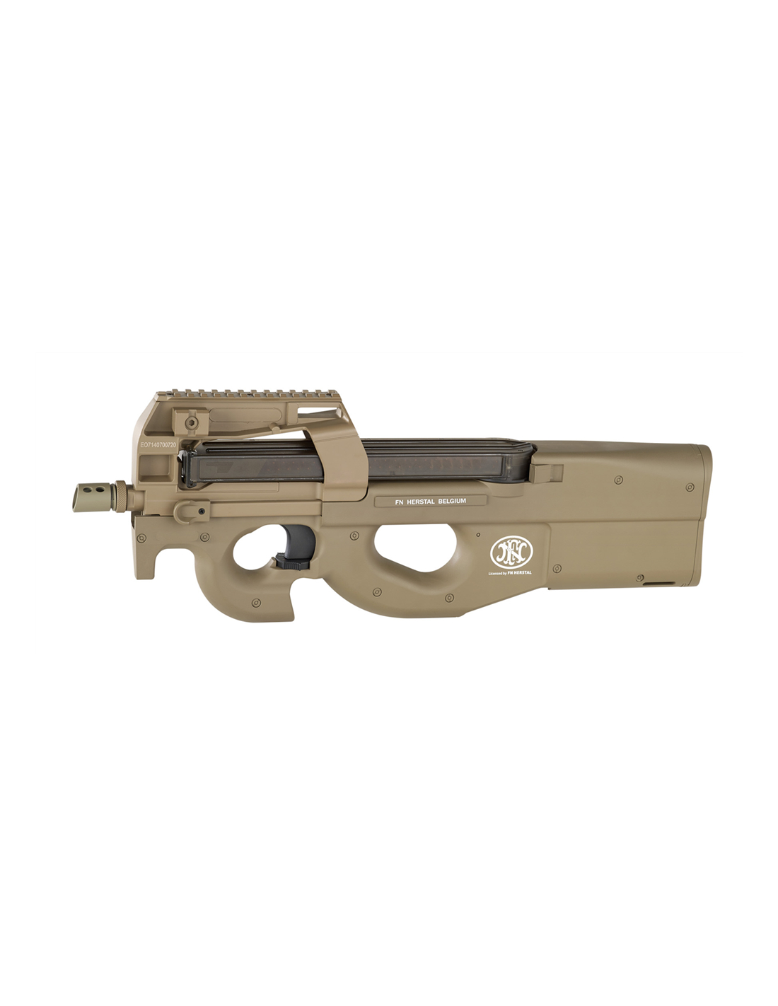 Avec ses marquages officiels FN Herstal, le FN HERSTAL P90 Complet FDE-TAN - AEG est une réplique fidèle qui capture l'essence du pistolet mitrailleur emblématique. Son design compact BullPup, caractérisé par un canon court, en fait une pièce distinctive pour les joueurs cherchant à allier esthétique et fonctionnalité.