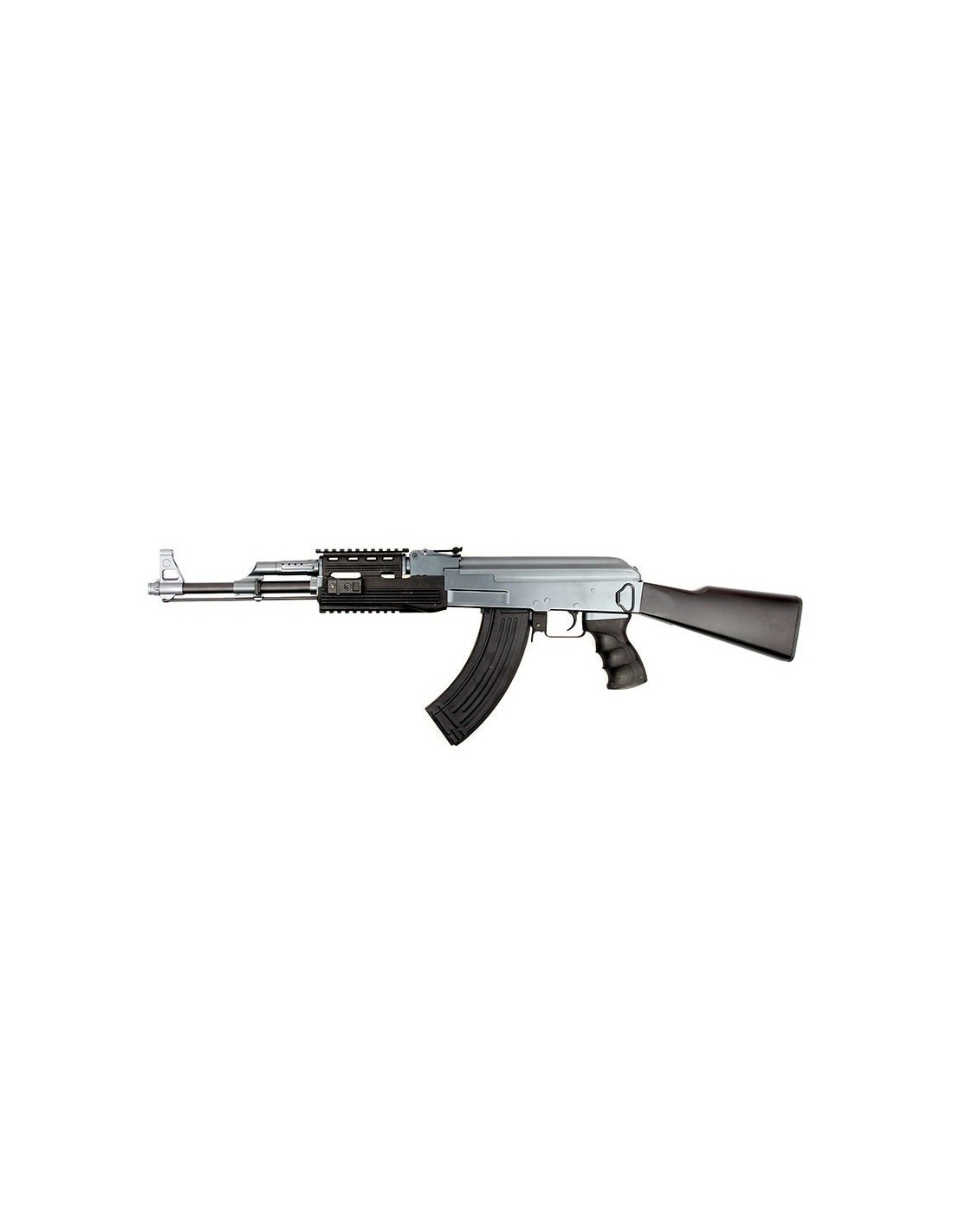 Cette AK47 dispose d'une attache sangle et un viseur mécanique réglable, elle dispose aussi d'un cache-flamme en 14 mm.
