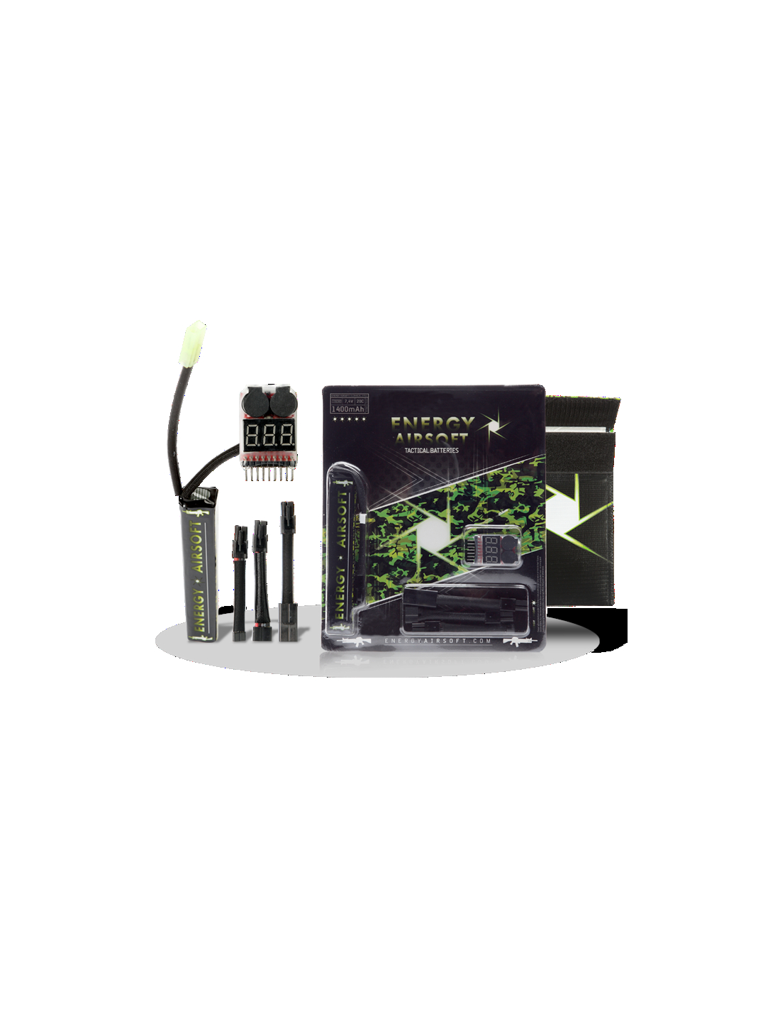 PACK3 Batterie Li-Po Energy Stick 7.4V 1400 mAh-20C + testeur + Sac antifeu